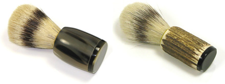 Passend zu den anderen Bartutensilien sind die Abbeyhorn Rasierpinsel. Der Griff ist wahlweise aus glattem Echthorn oder aus einem Stück Hischgeweih bestückt mit feinem Dachshaar.